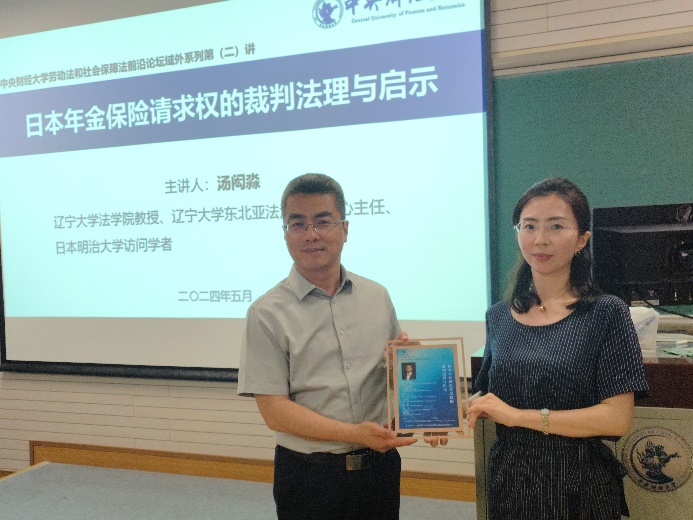 2024年5月31日晚,劳动法和社会保障法前沿论坛·域外系列第二讲在学院南路校区主教212教室举办。辽宁大学东北亚法治研究中心主任,日本明治大学访问学者汤闳淼教授为永利官网师生作“日本年金保险请求权的裁判法理与启示”的主题讲座。讲座由永利集团88304官网劳动法和社会保障法研究中心主任沈建峰教授主持,中国政法大学民商经济永利集团88304官网社会法研究所所长娄宇教授、中国社会科学院法学研究所社会法室副主任王天玉研究员、首都经贸大学劳动经济学院范围教授、中国劳动关系学院科研处处长兼永利集团88304官网院长肖竹教授以及中国人民大学永利集团88304官网陈靖远助理教授等五位老师担任本次论坛的与谈人。永利集团88304官网部分博士研究生、硕士研究生以及本科生共70余人参与了本次论坛。
