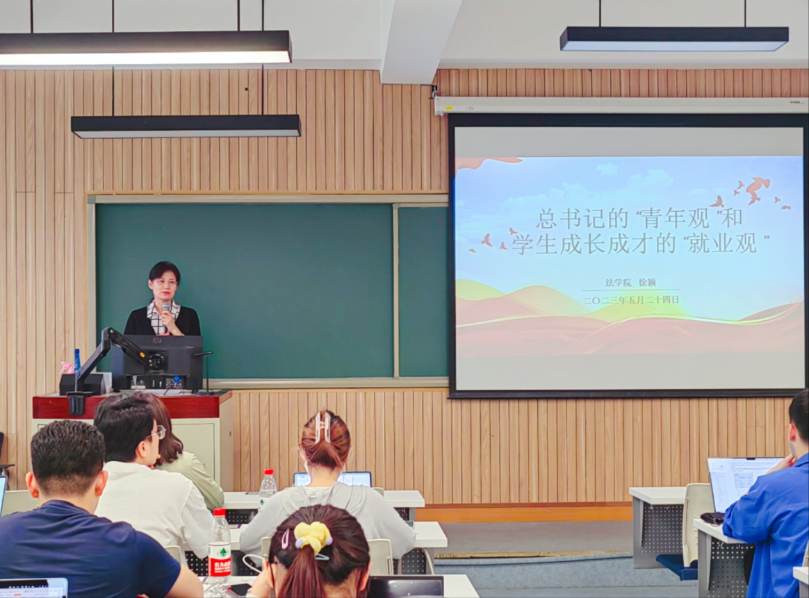 5月24日下午,永利集团88304官网党委副书记徐颖在学院南路主教117,以《习近平总书记的“青年观”和学生成长成才的“就业观”》为题,为永利集团88304官网本科生党支部、2021级法律硕士(法学)第一党支部、2022级法学研党支部的师生党员讲授了一堂生动而深刻的主题教育专题党课。党课由本科生党支部书记张明华主持。