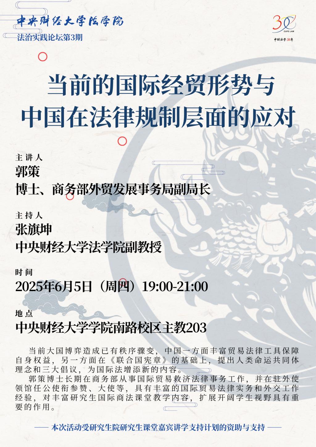 主 题:当前的国际经贸形势与中国在法律规制层面的应对