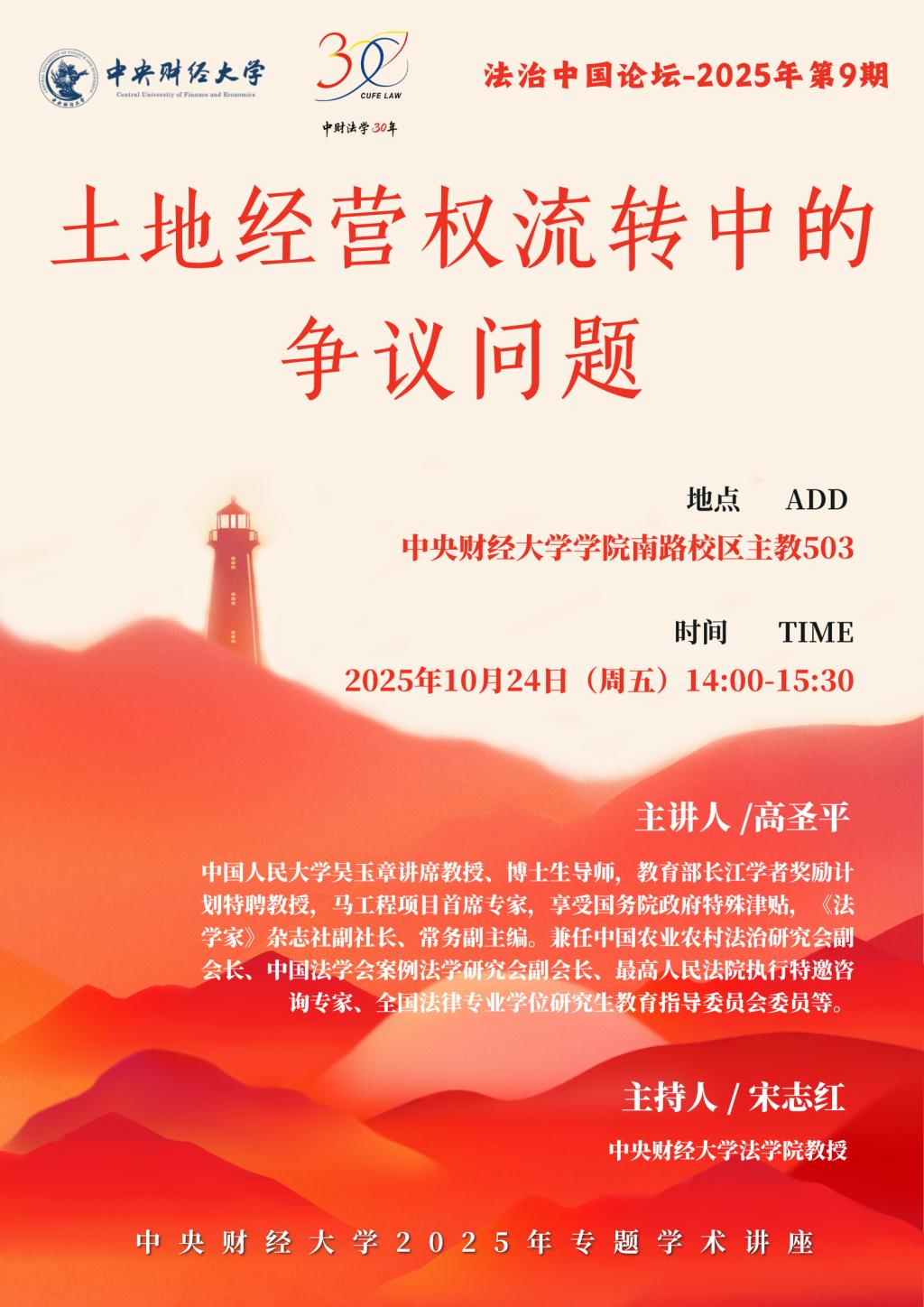 主讲人简介:高圣平,中国人民大学吴玉章讲席教授、博士生导师,教育部长江学者奖励计划特聘教授,马工程项目首席专家,享受国务院政府特殊津贴,《法学家》杂志社副社长、常务副主编。兼任中国农业农村法治研究会副会长、中国法学会案例法学研究会副会长、最高人民法院执行特邀咨询专家、全国法律专业学位研究生教育指导委员会委员等。